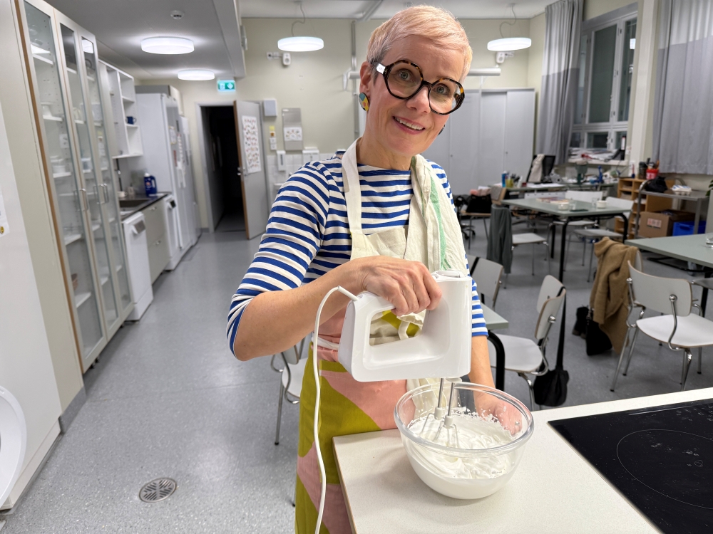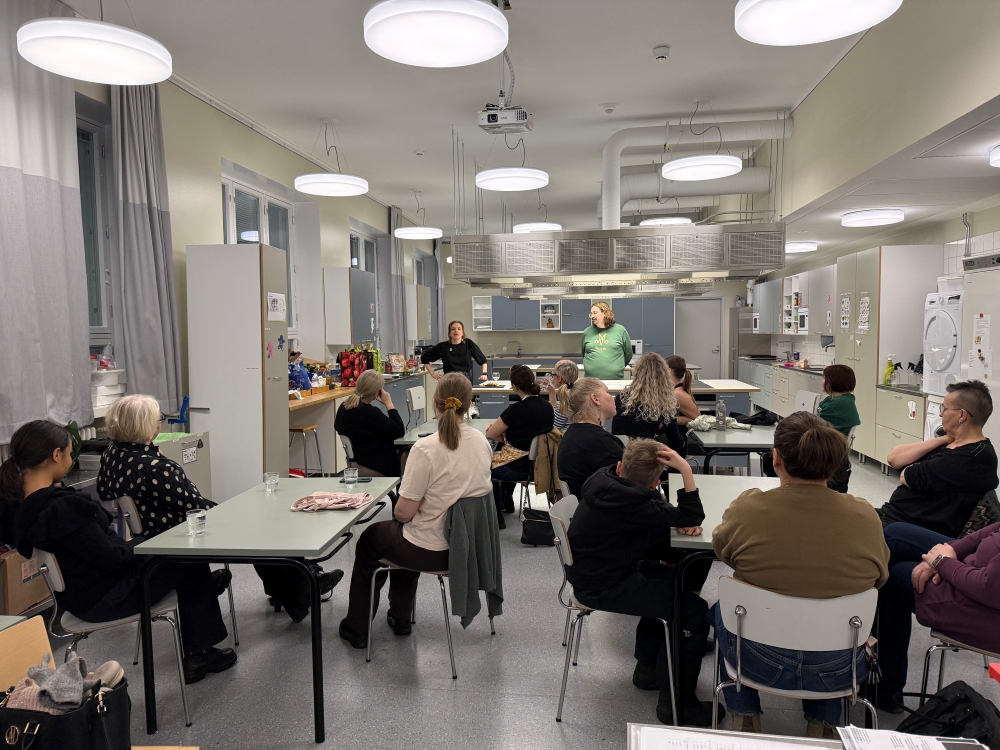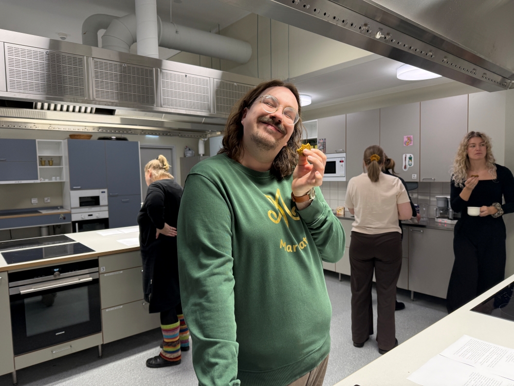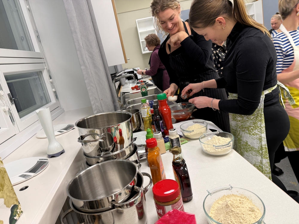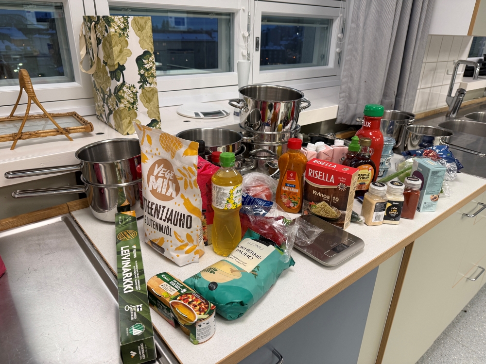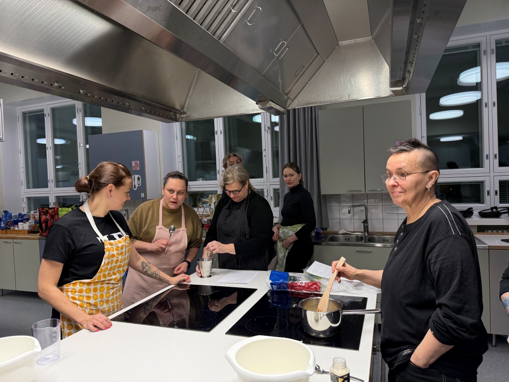 Helmikuisena tiistaina kipusimme kerros kerrokselta yhä ylemmäs Aleksis Kiven koulun kivisiä portaista. Määränpäänä häämötti ylimmän kerroksen kotitalous- eli köksänluokka, kuten moni meistä sitä yhä kutsuu. Olimme ensimmäistä kertaa varanneet tapahtumaamme ulkopuolisen tilan, jossa kaikki mahtuisivat kunnolla leipomaan ja kokkaamaan yhdessä. Ja kannattihan se! Paikalle saapui poikkeuksellisen runsas joukko innokkaita KUMilaisia.