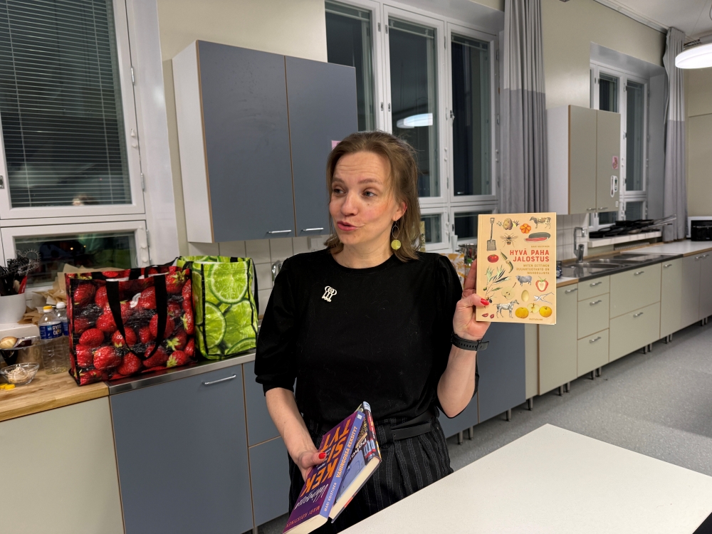 Seitanin saloihin meitä johdatti Mari Koistinen, jolle tämä vehnäproteiinista valmistettava kasvisruoka on tuttu jo vuosien takaa. Mari on kirjoittanut useita kirjoja, joista osa käsittelee eettistä ja kasvipohjaista ruokaa – saimme siis oppia todelliselta asiantuntijalta.